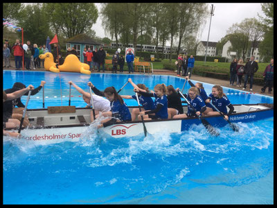 Wir, die wJB, haben am Dienstag, den 1. Mai 2018 im Zuge unserer Top-Vorbereitung an dem Drachenbootrennen im Wahlstedter Freibad teilgenommen und bewiesen, dass wir nicht nur in der Halle, sondern auch auf dem Wasser, einiges können.